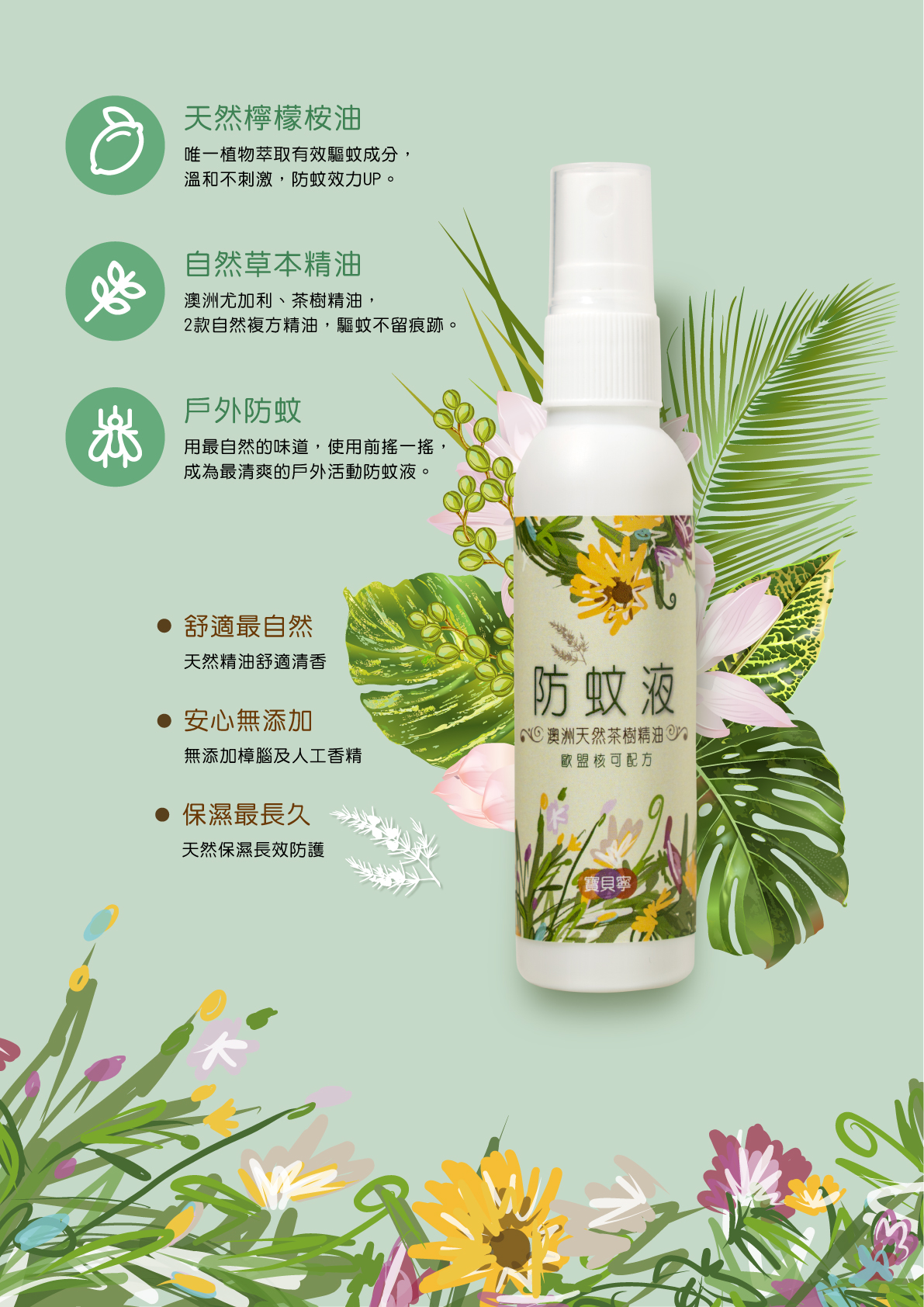 • 主成分:天然檸檬桉精油、天然茶樹精油、檸檬桉醇